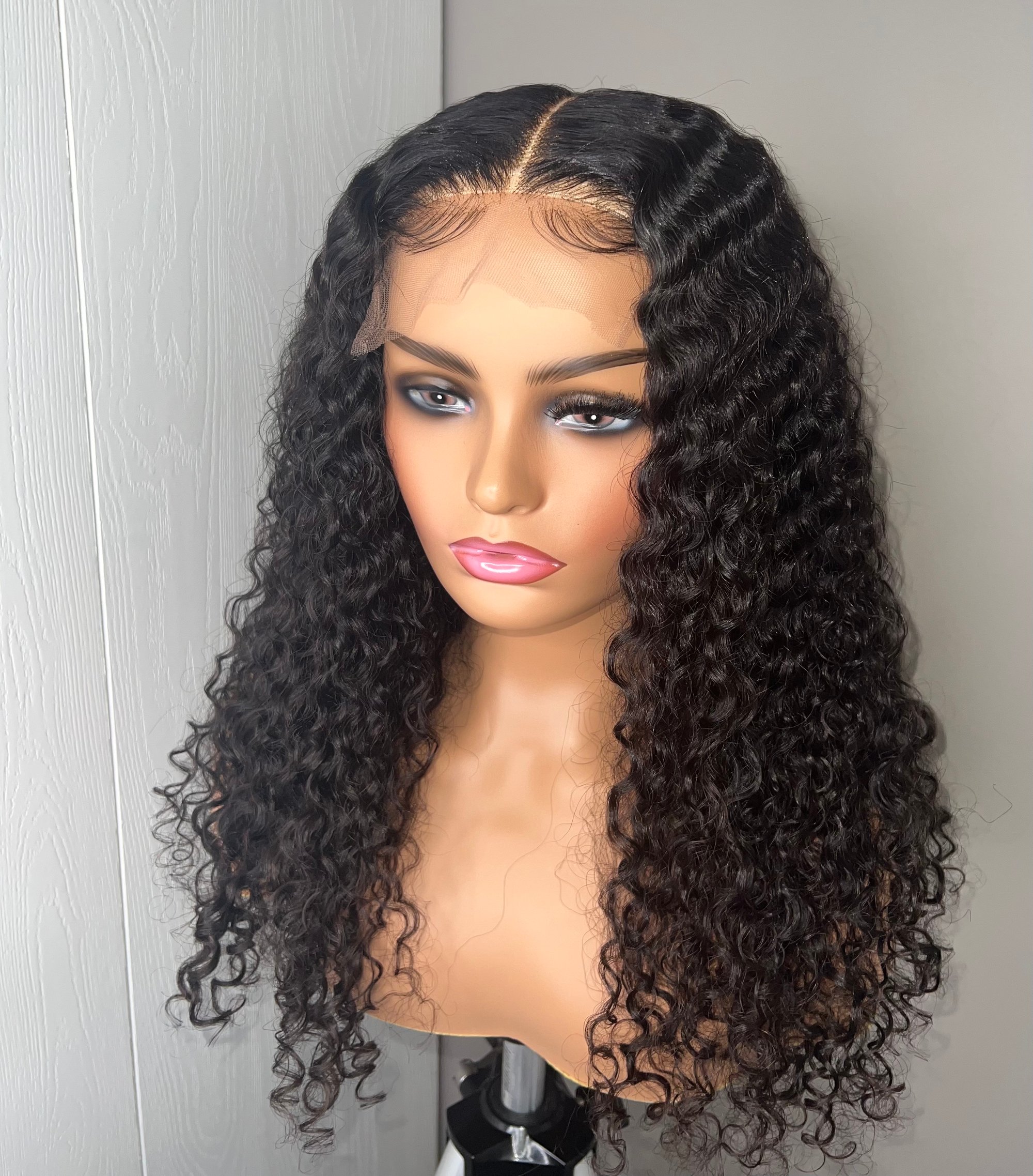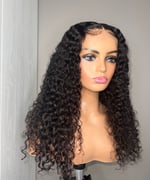 The "Teyanna" Unit is made with lengths 18-22" of our Curly bundles and a matching 5x5 Lace Closure. This wig is handmade to perfection and will last multiple years with proper care. The unit comes with a plucked middle or side part and styled in the natural texture and color.